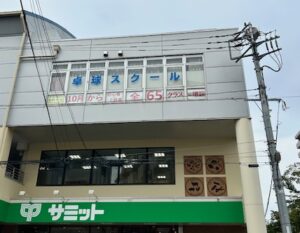 道路から見える窓の看板にも65クラスに増設されたことをPRしています(笑)。