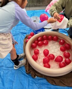 子ども向けの遊びも充実していて、ヨーヨーすくいの水風船には「W」のマークが印字されたオリジナル仕様。