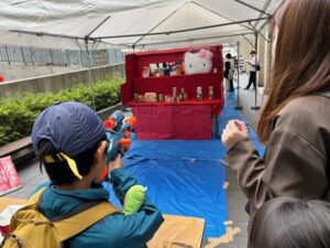 射的では豪華景品が並び、息子がキティちゃんに当てないよう願っていたのですが……残念ながら何も当たりませんでした(笑)。