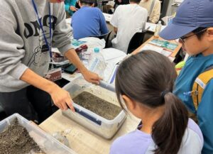 液状化現象を砂と水で再現しながら説明してくれるブースでは、小学2年生の娘が「えきじょーか」が理解できた!と嬉しそうに話していました。