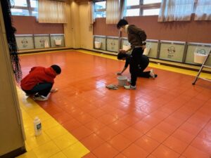 本日の大掃除には、卓球コーチのメンバーも参加してくれています。本当に頼もしく、ラリーフィット!を支えてくれる大切な仲間です。
