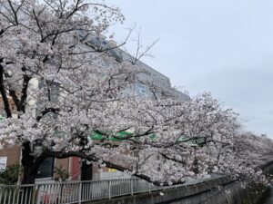 昨日、出勤した際にスクールの横を流れている石神井川の桜の木を見てみると、「咲いていました」。